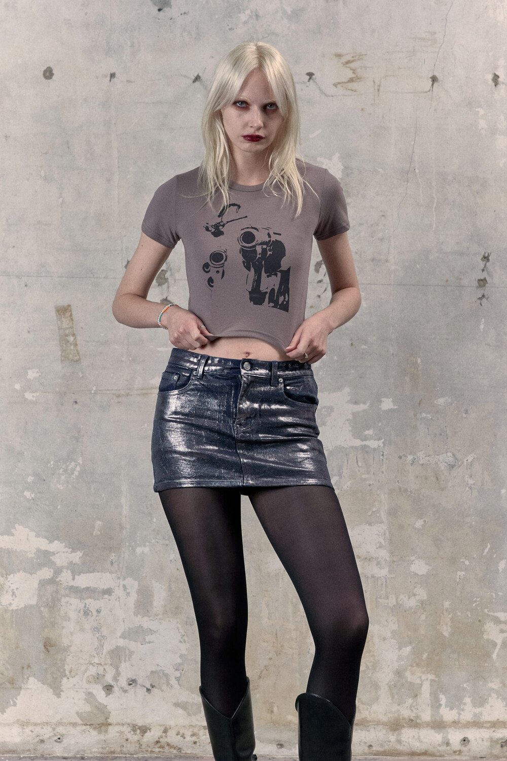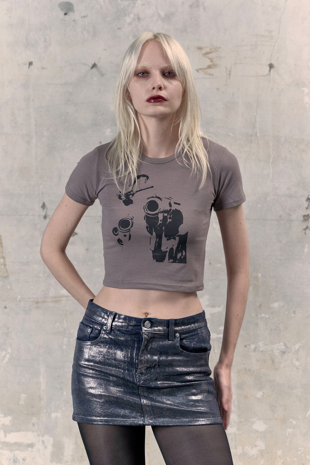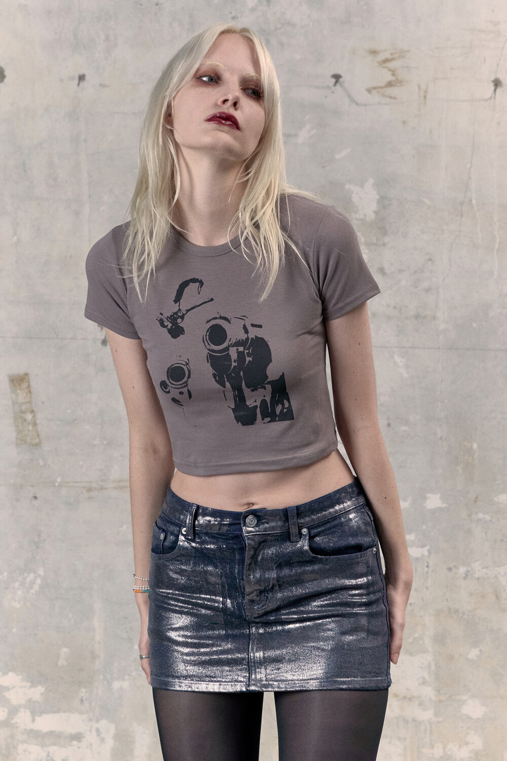 유니크한 워싱을 위해 Brush Air를 이용해 트윙클한 가루를 추가로 분사시켜 후키작업으로 제작된 데님치마입니다.